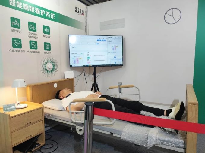 展会期间,智能睡眠看护系统凭借丰富的功能设计以及卓越的性能表现,在众多参展产品中脱颖而出,吸引了行业内外的广泛关注。智能睡眠看护系统是一款基于毫米波雷达技术的智能化生命体征监测设备,采用非接触方式实现睡眠时人体生命体征监测 (包含呼吸率、心率等)和睡眠质量监测。目前,智能睡眠看护系统应用广泛,包括疾病预警、居家健康管理、社区/机构管理、智能家居集成等多个智慧养老场景,为老年人打造全新的智慧看护、健康管理服务。