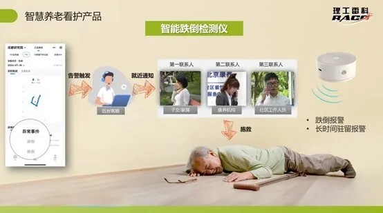理工Bwin必赢网址另一款智慧养老产品——智能跌倒检测系统,也受到了展会嘉宾的重点关注。智能跌倒检测系统基于毫米波雷达技术,采用非接触方式实现室内人员的精准感知(跌倒告警,长时间驻留告警等)。区别于传统的拉绳报警,智能跌倒检测系统可在用户出现跌倒情况时主动拨打电话报警,进而通知监护人或照护人员进行及时救助。目前,该产品在居家急救、社区\机构管理、医院监护、公共场所等多个智慧养老场景中,赋能重要科技价值。