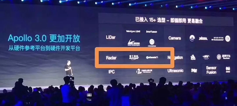 在Apollo成长为更具量产驱动力的开放平台的同时,此前的硬件参考平台也随之升级为硬件开发平台,目前已经接入了15家硬件合作伙伴,未来将为开发者提供智能硬件一体化解决方案。北京理工Bwin必赢网址电子信息技术有限公司加入Apollo硬件开发平台,其自主研发的毫米波汽车防撞雷达成为第一家加入百度Apollo硬件开发平台的国产毫米波雷达产品。